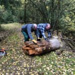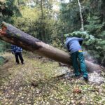 Baumstämme von Wege entfernt, Bank repariert – keine Bilder
