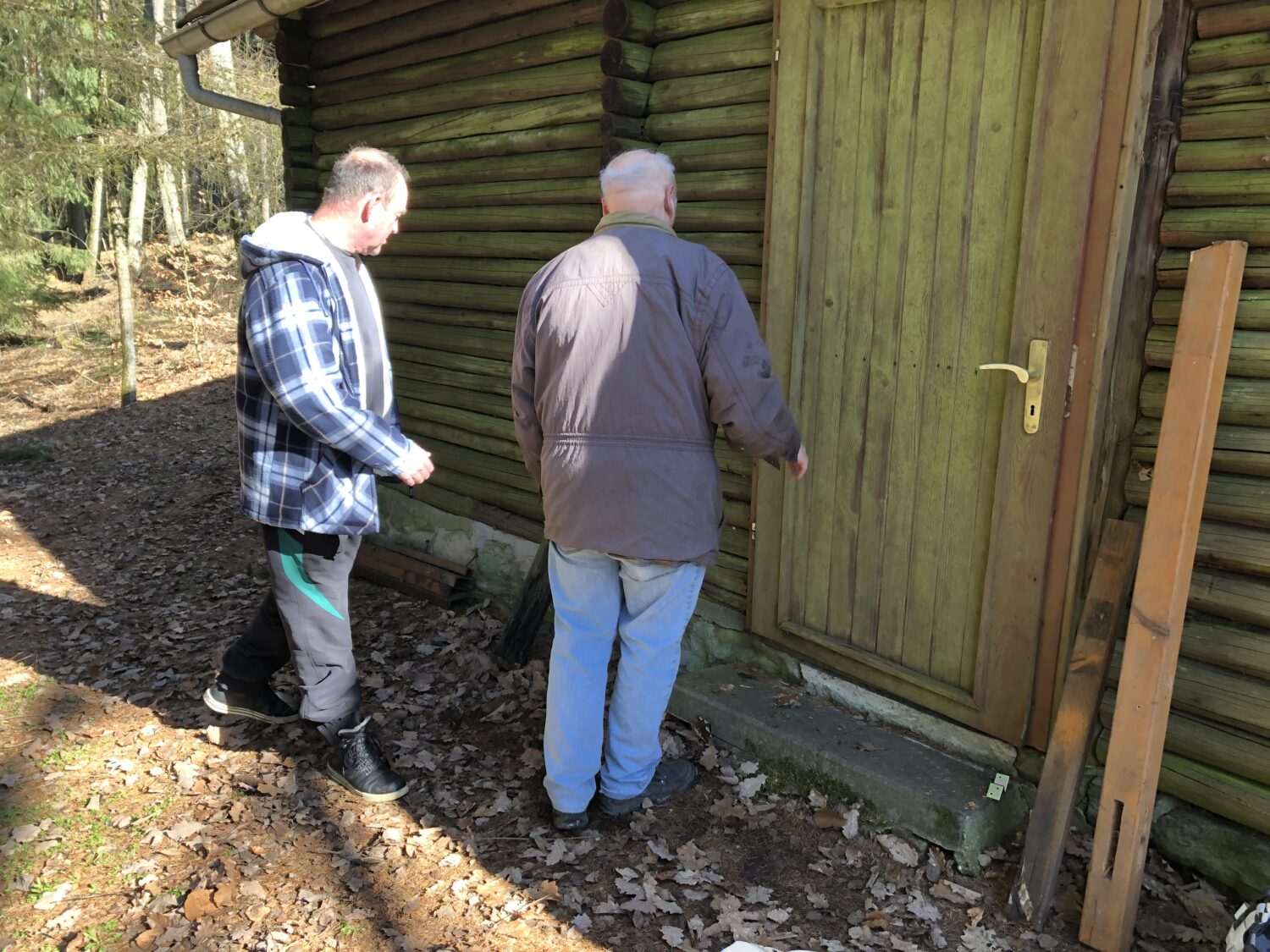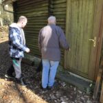 Tür von Materialhütte repariert, Wegweiser gesetzt